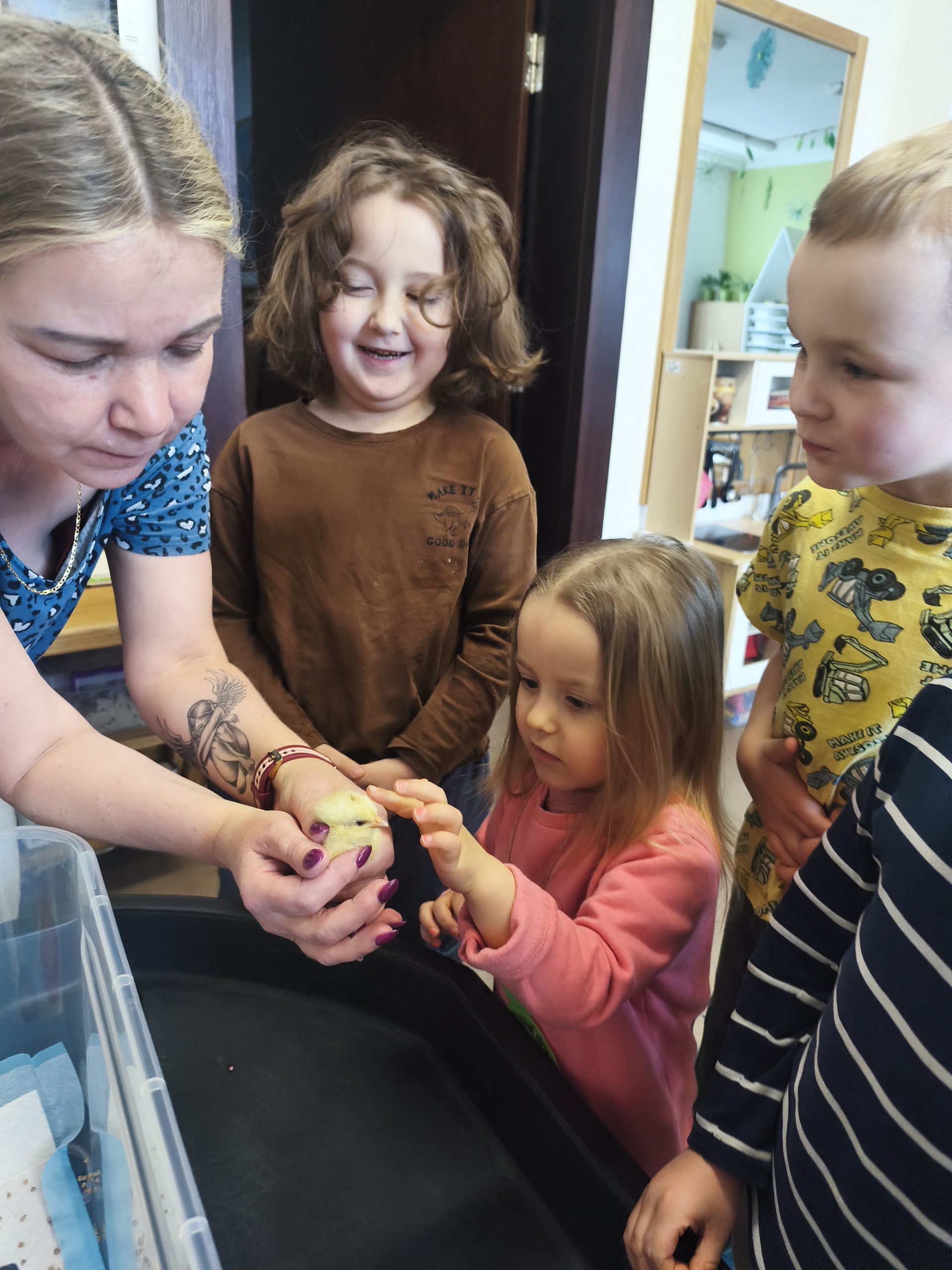 Během měsíce března jsme si s dětmi užili opravdu pestrý program plný zážitků, objevování i prvních doteků jara. Společně jsme se vydali do Ostravského muzea na program „Hledánky s Otou“, kde děti hravou formou poznávaly přírodu. Ve školce nás navštívili skřítci z bylinkové zahrádky a děti si vyzkoušely poznávání vůní i bylinek a zažily spoustu legrace. Nejstarší děti se také podívaly do galerie PLATO Ostrava na program „Na vlastní kůži“, kde se seznámily s uměním zcela netradičním způsobem. Hudební zážitek nám přinesla Janáčkova filharmonie Ostrava s programem „Zpívá/Nezpívá“, který děti vtáhl do světa hudby a zvuků. V naší školce proběhla také první tvořivá dílna „Malý řemeslník“, kde si děti vyzkoušely práci se dřevem a rozvíjely svou zručnost. Velkým zážitkem, nejen pro děti, byl poslední březnový týden, kdy jsme společně pozorovali zrození kuřátek – od vajíčka až po malá, čerstvě vylíhlá kuřátka. S příchodem jara a hezkého počasí jsme vyrazili do parku a hledali první známky jara, jarní kytičky, broučky a společně jsme se symbolicky rozloučili se zimou vhozením Moreny do řeky Ostravice.